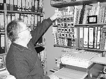 Für seine Vorbereitungen steht ihm eines der größten historischen Bildarchive weit und breit zur Verfügung. Es umfasst 35 000 Dias, darunter 6000 aus Hambach und 2000 aus Schweinfurt, viele als Schwarzweißaufnahmen, jedoch auch einige aus der Anfangszeit der Farbfotografie. Er hat sie in jahrelanger mühsa-mer Tätigkeit selbst fotografiert und gesammelt. Geordnet sind sie nach alphabetischen Stichworten, angefangen von Brauchtum und Bildstöcken bis hin zu Vor- und Frühgeschichte. Auf jeder Karte seiner Hängeregistratur befinden sich 40 Lichtbilder. Er braucht sie nur noch vor eine Leuchttafel zu halten und kann so leicht eine Auswahl treffen. Zusätzlich verfügt er über eine große Auswahl von historischen Papierbildern.