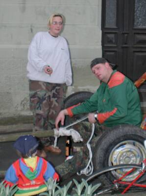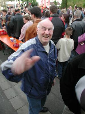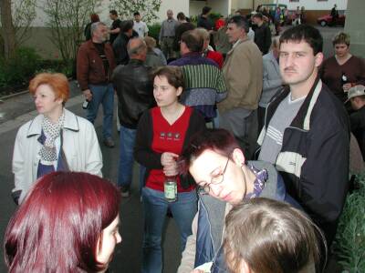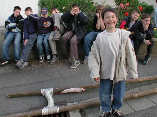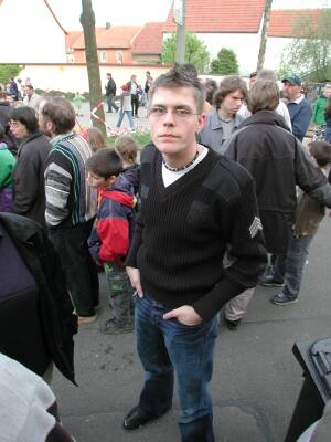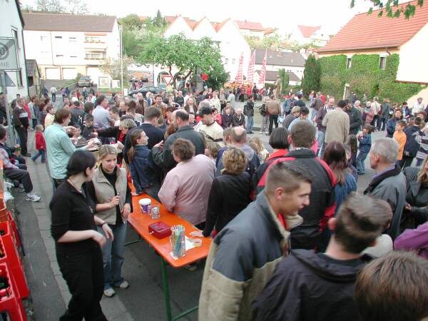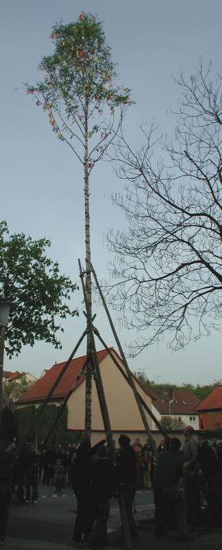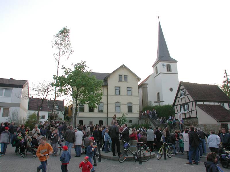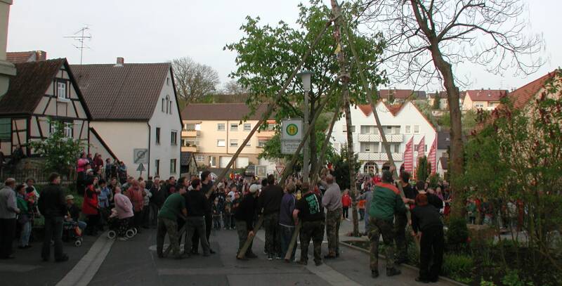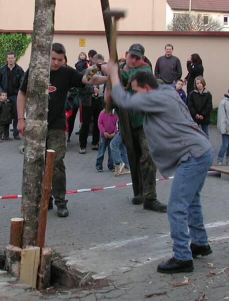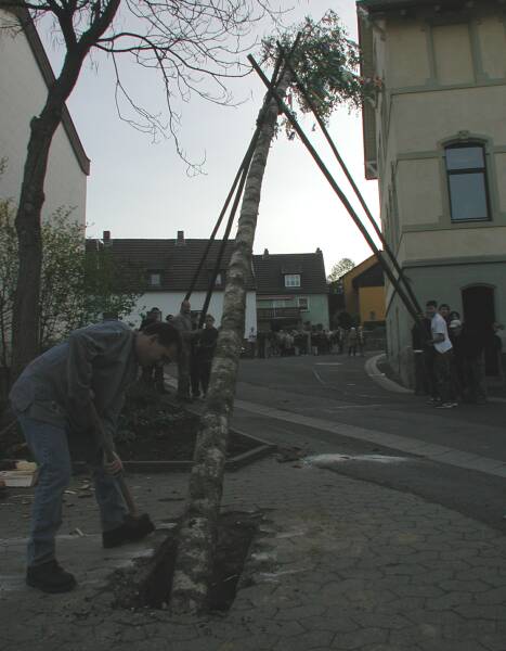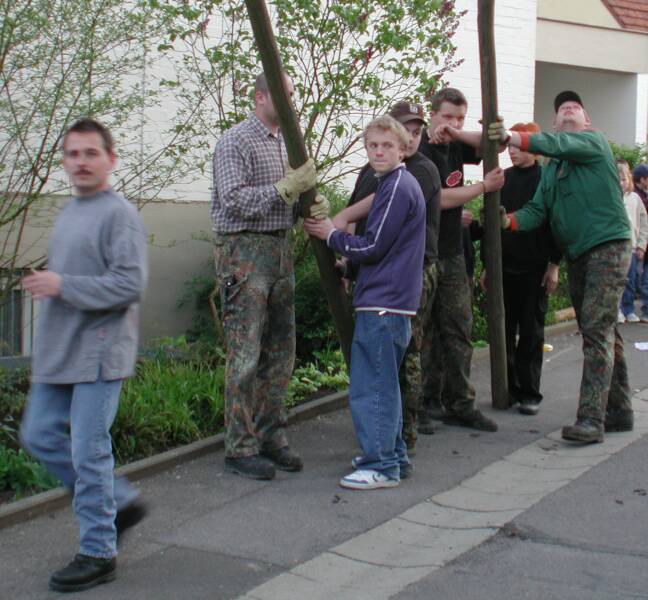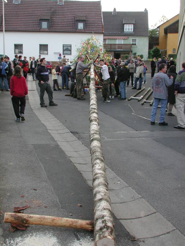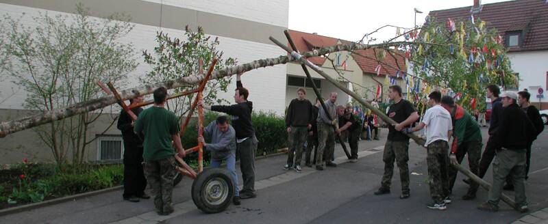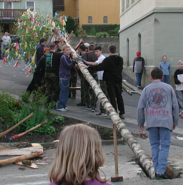 Maibaumaufstellen der Dorfjugend auf dem Pfarrparkplatz am 30.04.2002